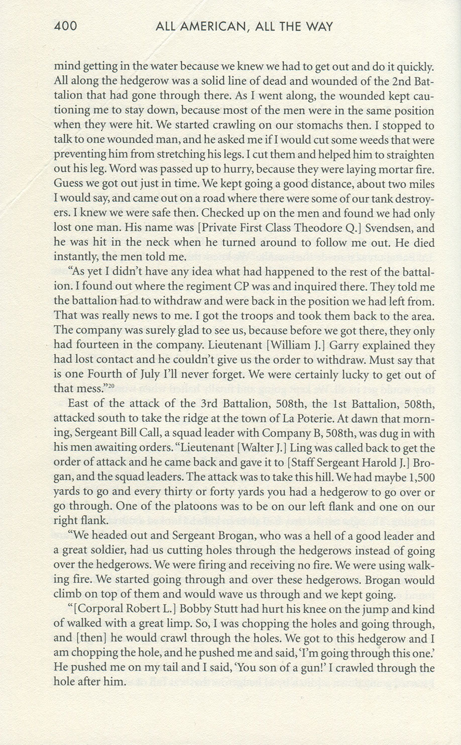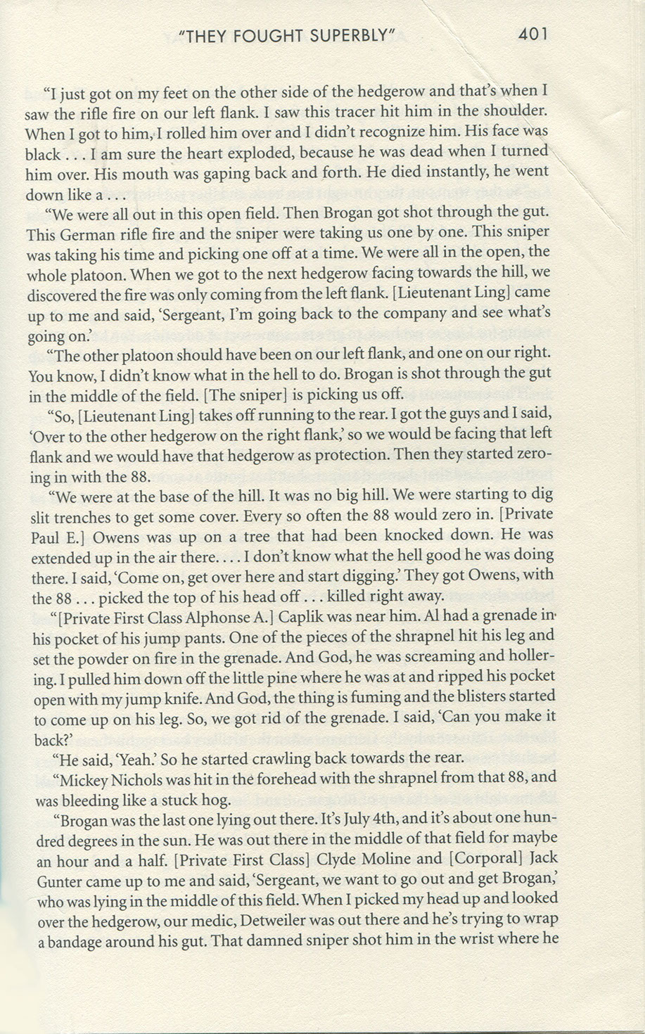 According to William Call, one of his fellow sergeants, Harold was a good leader, brave, and a straight arrow that always kept his word. Hill 95 was the last hill to be taken in Normandy. If Harold had survived that battle, he would have survived the war. He always told June he had too much to live for.