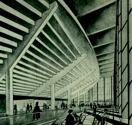 These are concept drawings by the Skidmore Owings and Merrill design team c1958 for Memorial Coliseum.
