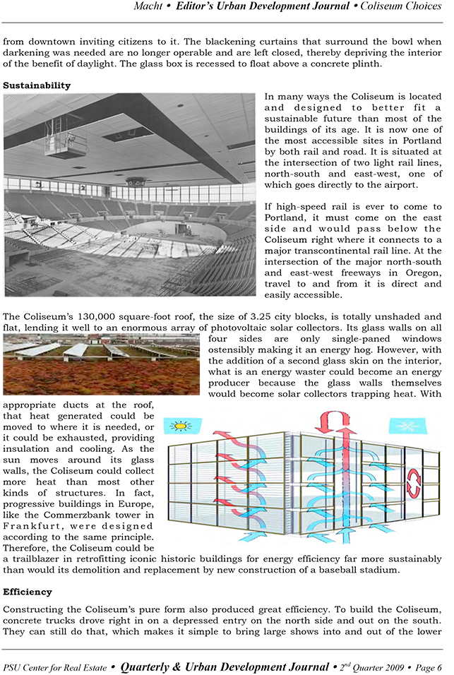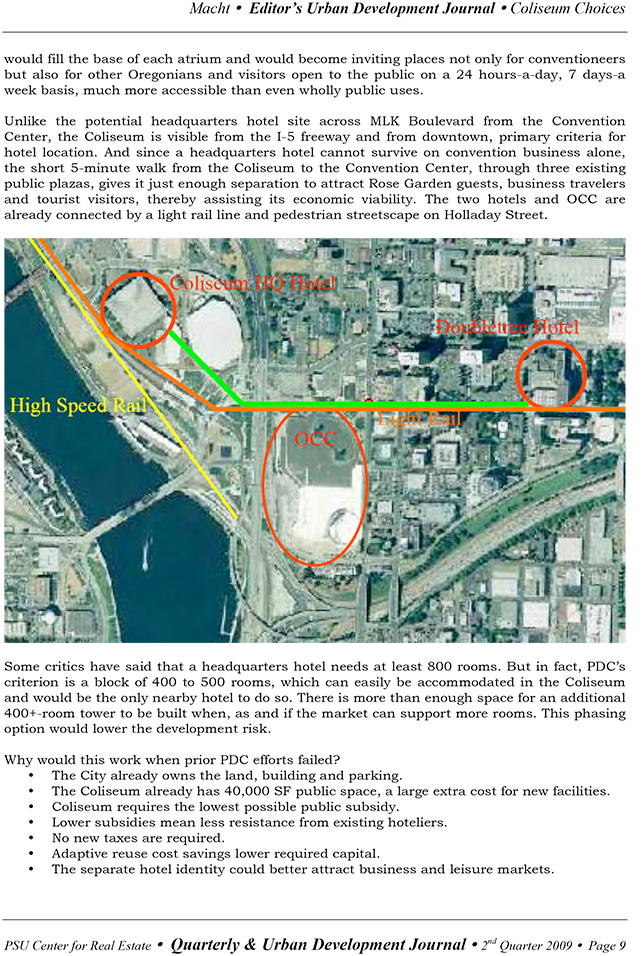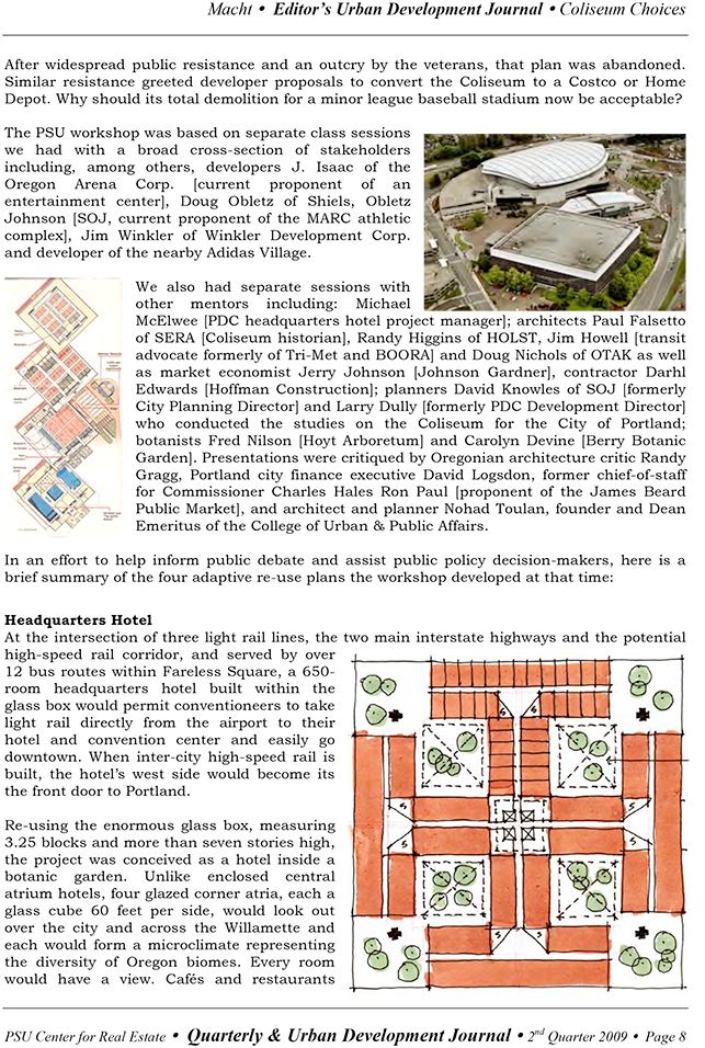 William Macht has taught real estate development and planning at Portland State University for over 28 years as well as a development consultant for the past 30 years. This report, which Macht wrote, looks at the variety of uses that have been proposed for Veterans Memorial Coliseum, as well as its underlying development agreement (in which the Portland Trail Blazers, through Portland Arena Management, are allowed to manage and operate the city-owned Coliseum in tandem with the team-owned Moda Center arena next door. Macht has long argued that the management agreement creates a financial incentive for the Coliseum’s managers to take the arena to just short of the break-even point that would trigger routine maintenance.