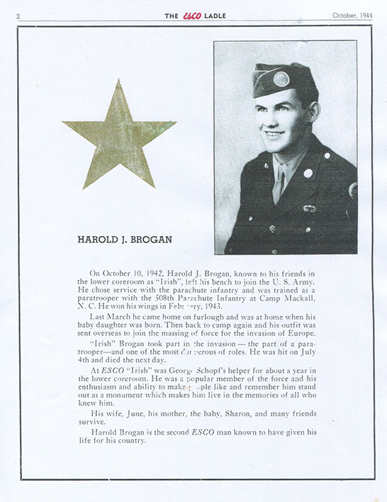 Harold J. Brogan graduated from Jefferson High School in Portland in 1939. He met June Payne at a dance, they fell madly in love and were married in 1941. Harold then started working at ESCO, and Harold and June bought a little house at 4510 NE Holman Street in Portland.