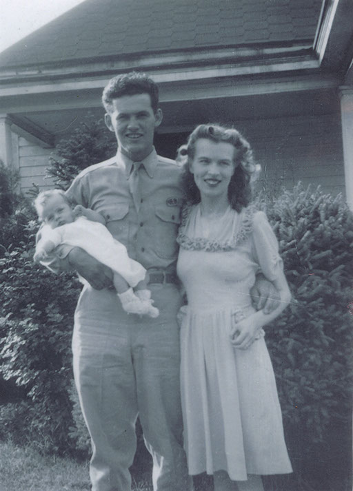 Then Pearl Harbor was attacked on December 7, 1941. In 1942 Harold enlisted in the US Army at Ft. Lewis and shipped out of Portland for training at Fort Mackill in North Carolina. He wanted to be a paratrooper and was trained with the 508th parachute infantry. Harold returned to Portland in March 1943 on furlough to be with June when their daughter Sharon was born. In June 1943, June and Sharon went to North Carolina and spent the summer with Harold before he was shipped to Ireland and England to prepare for the D-Day invasion on June 6, 1944. After parachuting into France, Harold was a Staff Sargeant commanding over 60 men making its way west on the Contentin Peninsula to near the town of la Huy-du-Puits. On July 4, 1944, attacking Hill 95, Harold was severely wounded and died the next day.