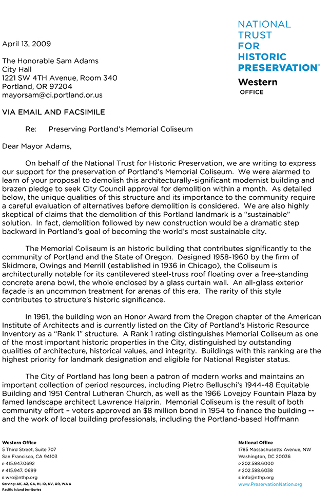 National Trust Letter_4/13/09